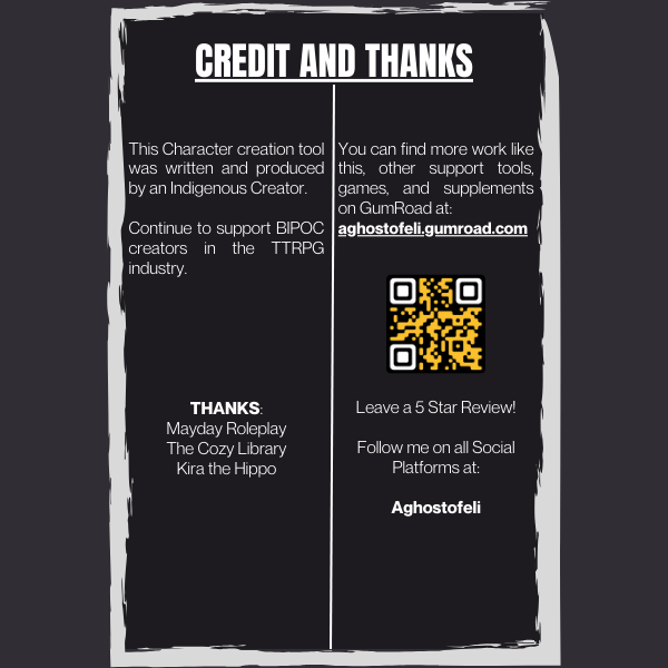 Using character prompts is a creative and effective way to develop well-rounded and engaging characters in any storytelling context, including tabletop role-playing games (TTRPGs). Knowing your Character before the first dice is rolled is a rewarding experience. It encourages the exploration of unique quirks, motivations, and backstories that may have yet to be initially considered. We aim to foster creativity and seek depth as we build our storytelling skills.